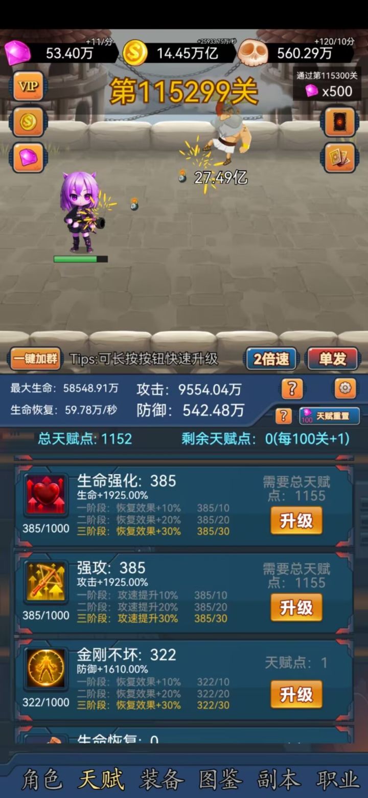 下面放上加点截图,就算11.5w关推图也是很轻松的,一截图过一关