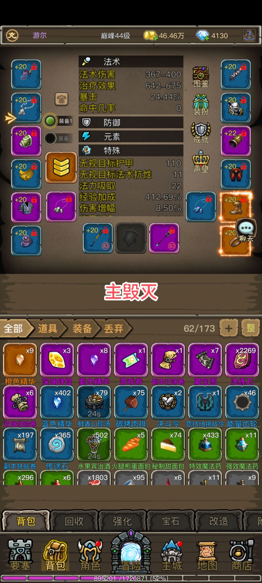 主恶魔,法伤>爆击>爆伤>智力>回蓝>精神。个人觉得应该是挑等级和属性高的穿就行了,巅峰的施法速度对恶魔也没啥用,都是瞬发技能。