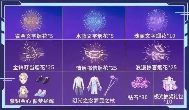 完成对应任务更是可得人鱼星愿烟花道具、极光抽奖礼包、高级材料礼盒、扭蛋币、点券等惊喜好礼~