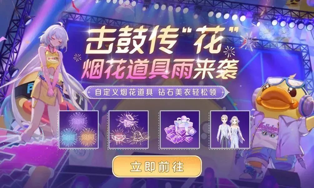 7月13日至7月28日期间,每日可通过任务获得鼓槌,消耗鼓槌击鼓,每次击鼓上方会随机掉落钻石*30、组合装、极光抽奖礼包*10、金铃叮当烟花*25等奖励(鼓上方的3个奖励在全部掉落后会进行刷新)~