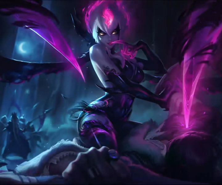 如果伊芙琳的生命值低于250-590(+2.5AP),她将在该技能激活的同时快速回复生命,每秒回复15-50生命值。从6级开始,恶魔魅影还将提供伪装效果 —— 只有靠近敌方英雄、控制守卫和防御塔时才会被发现。来自敌方英雄的伤害会让【恶魔魅影】进入1.5秒的冷却。
