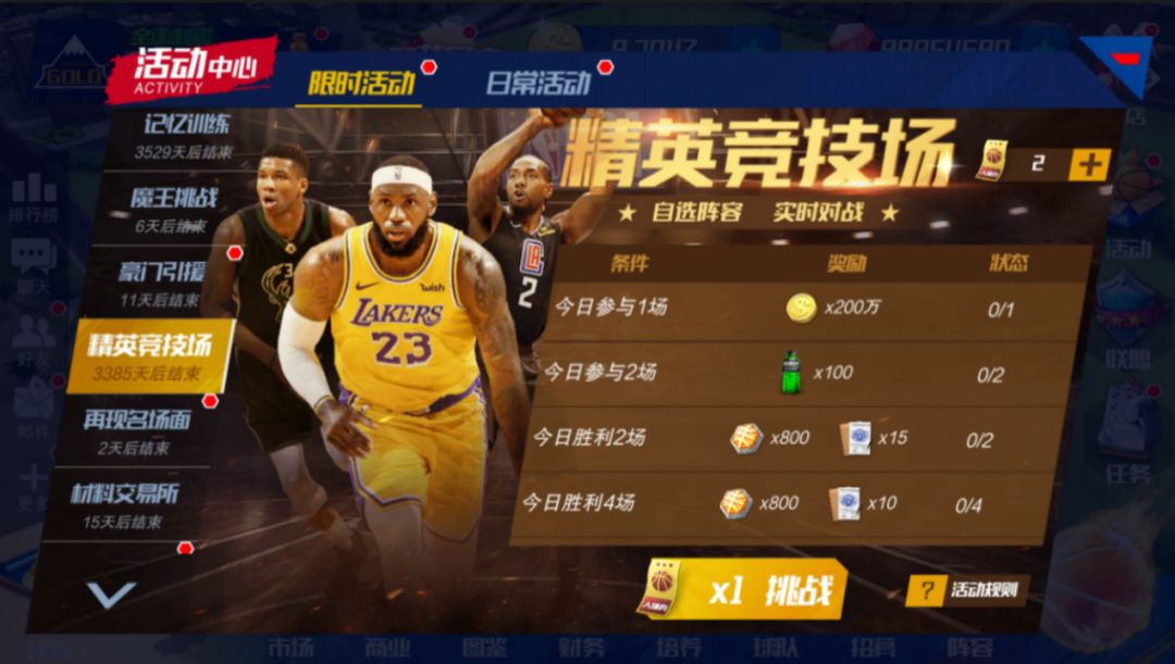 加入精英竞技场,随机选择系统提供的限定球员,组成球队参与实时对决的比赛,即可获取【转会签约函】等丰厚奖励!