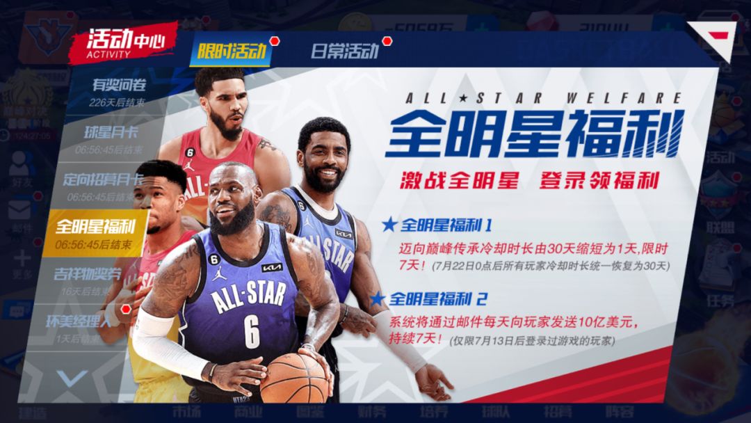 2. 活动期间,美元大馈赠,经理人每天10点董事会将通过游戏内邮件,给经理人发放超多美元赞助。(7月13日00:00后有登录的经理人可以收到,邮件存在有效期,请经理人们注意及时登录领取。)