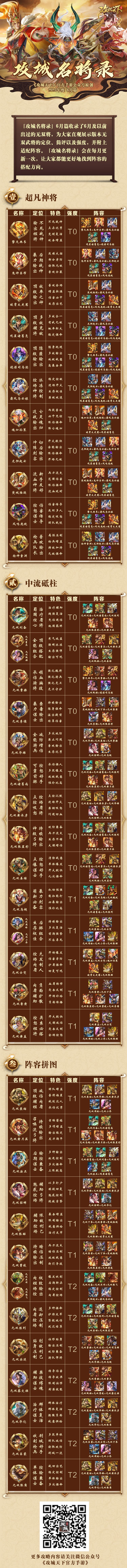 攻城名将录6月篇!武将定位、梯度排行、阵容搭配一图读懂!