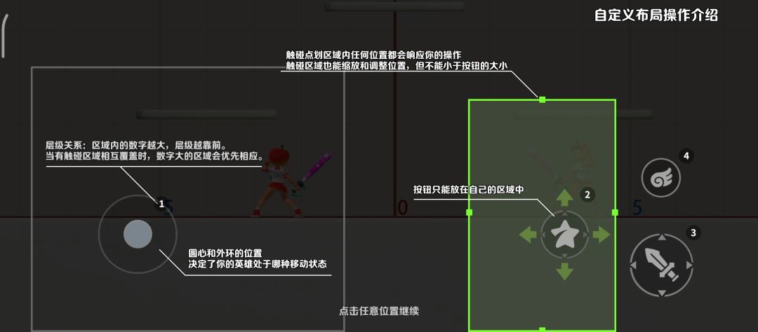 注意:不同按键的响应区域不要重叠,否则会出现串招和操作混乱的情况!!!