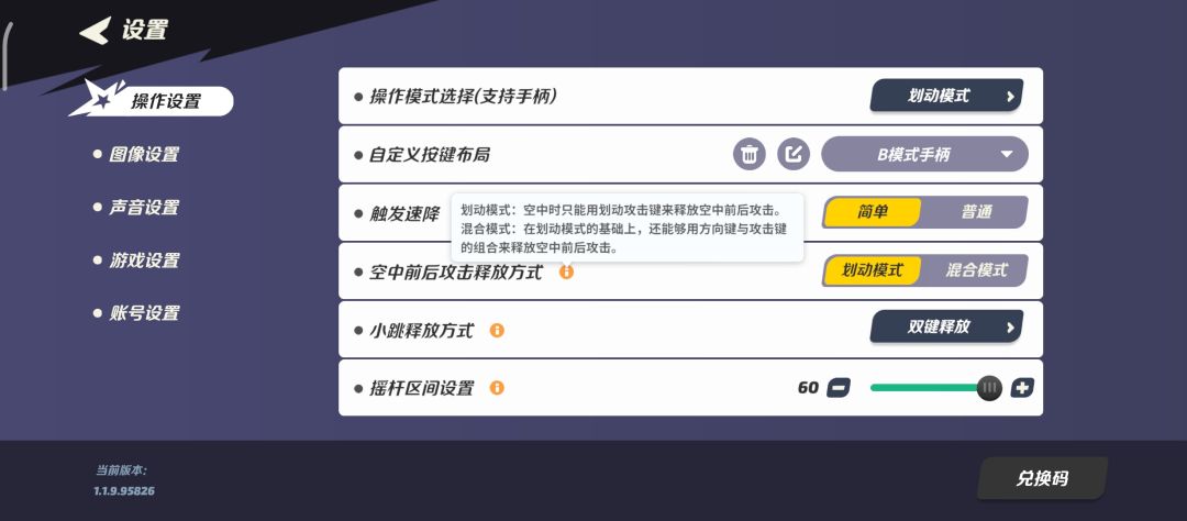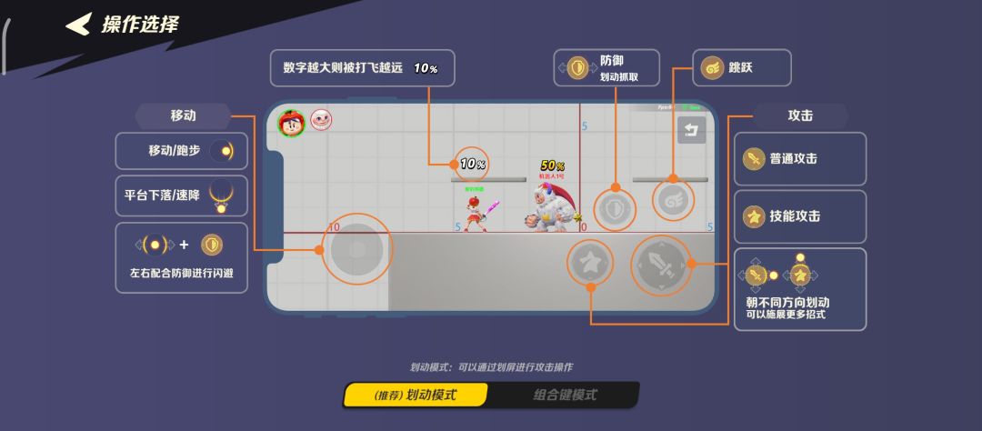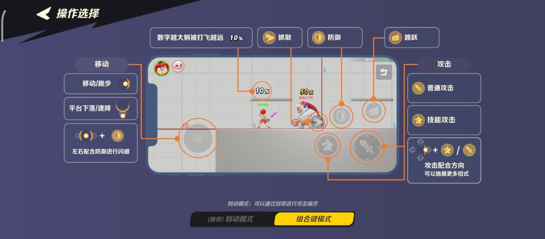 主要在于混合模式在纯滑动的基础上还可以用方向键与攻击键的组合来释放空中前后攻击。