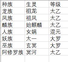种族 生灵 等级