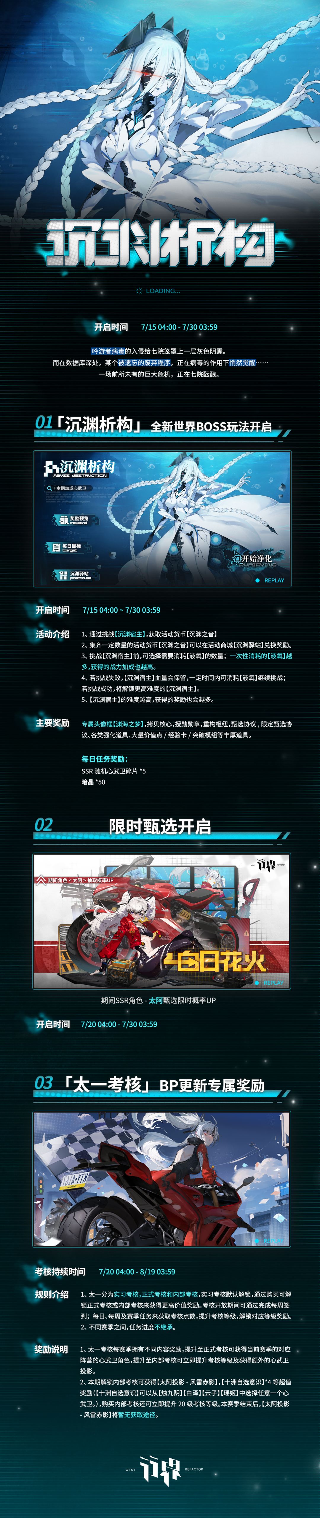 7/15 ~ 7/30 ,「沉渊析构」开启。