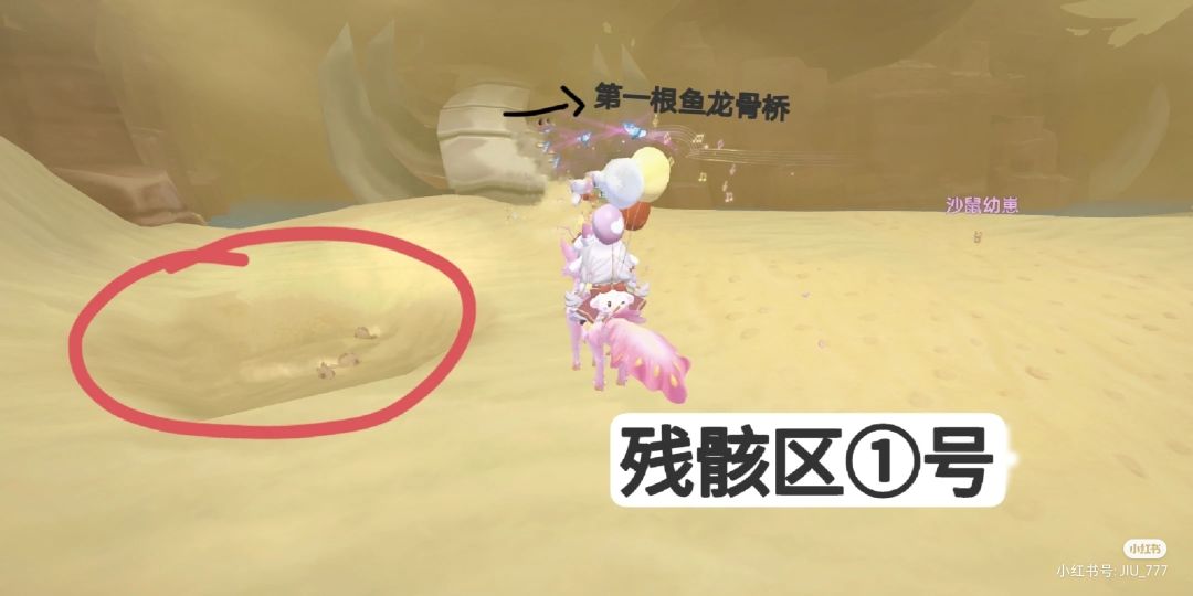而残骸坑的位置处于两条鱼龙骨桥附近的三个沙坑(顾名思义,残骸区就是附近你能看得见残骸骨头的沙坑),可以钓夜晚常驻传说绯光蝾螈!