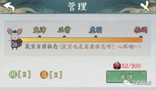 ·琉璃珠可以用来雇佣鼠宝;(前期建议用仙玉购买到4只鼠宝稳定资源的采集)·每采集成功一次,消耗鼠宝的1次精力;
