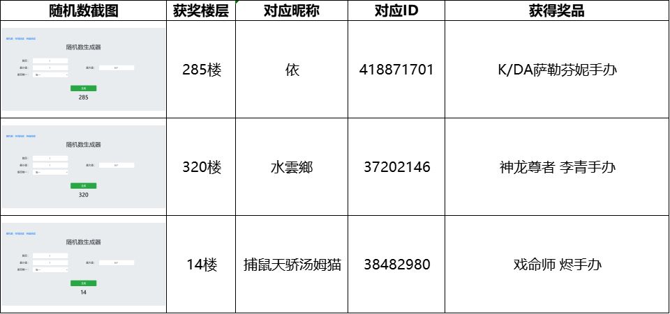 活动截至时有效楼层为567楼,经随机数抽取获取获奖楼层和名单如下: