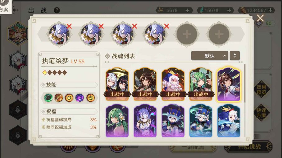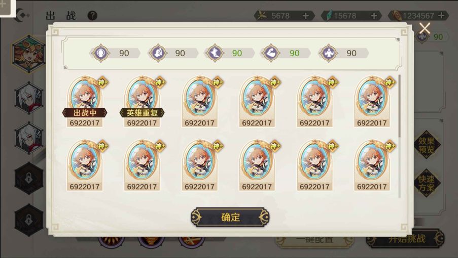 上方会显示当前已选择出战的,