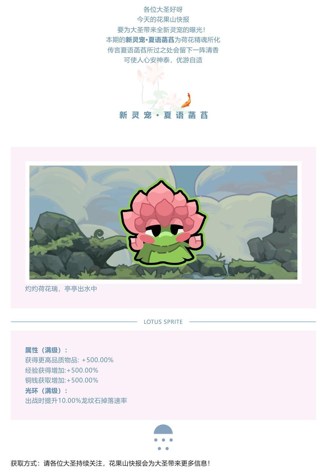 花果山快报丨新灵宠·夏语菡萏属性曝光!
