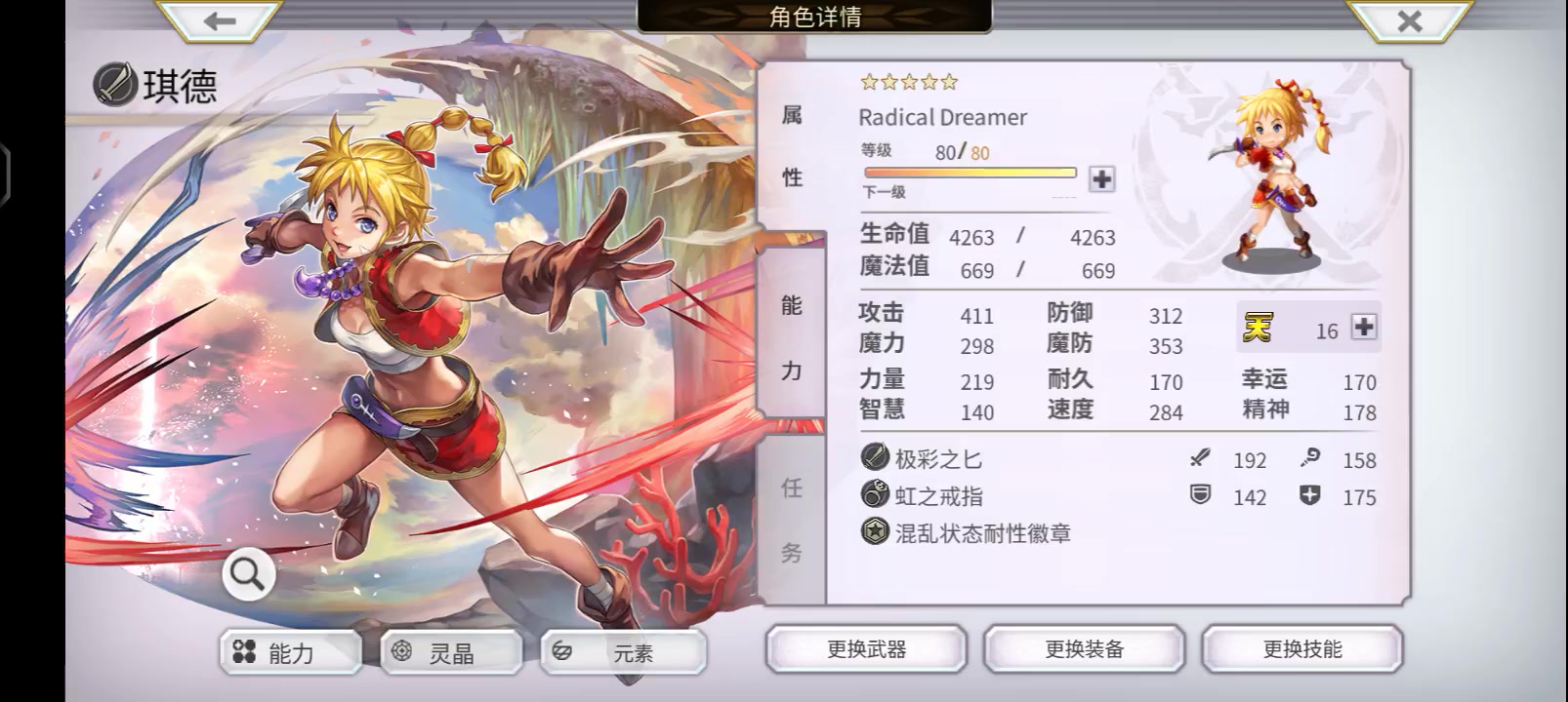 灵晶要求可能有些麻烦,就是各种减mp消耗,人鱼弓神剧每回合回50蓝,加上mp回复灵晶,可以做到永动,徽章可以看情况免疫带,星之子可以带净化和疗愈之风元素,去除负面效果,又奶又解异常还能先制降力智,岂不美哉!!