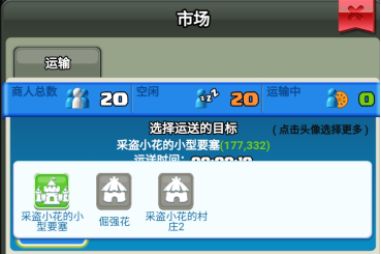 首先,市场可以给自己的分村和联盟成员的村庄运输三大资源:木头、石头、粮草,也可以给自己和联盟成员的要塞运输粮草(考点:要塞只能运粮草过去),点击头像即可选择具体目的地。