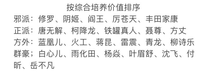 柯降龙:比阎王伤害高;主升配饰;技能主逍遥棍法心法带内力生命或者玄天功;大力主要培养内力、生命
