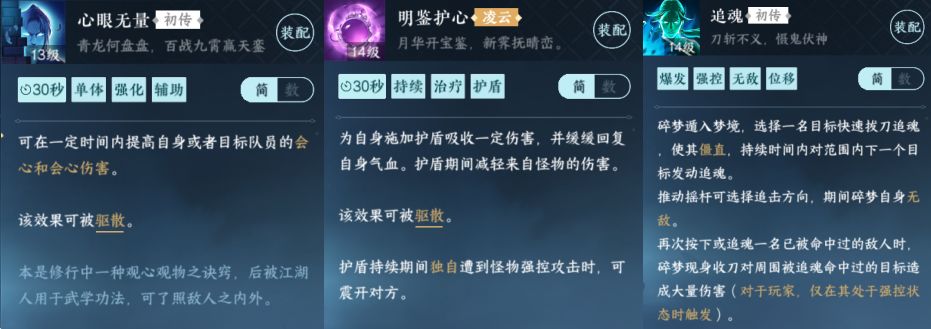 江湖技能绝技推荐搭配:心眼无量/明鉴护心/追魂