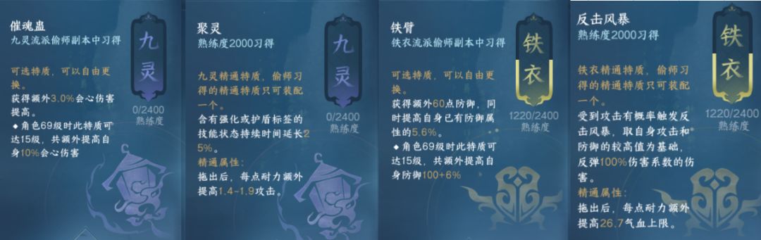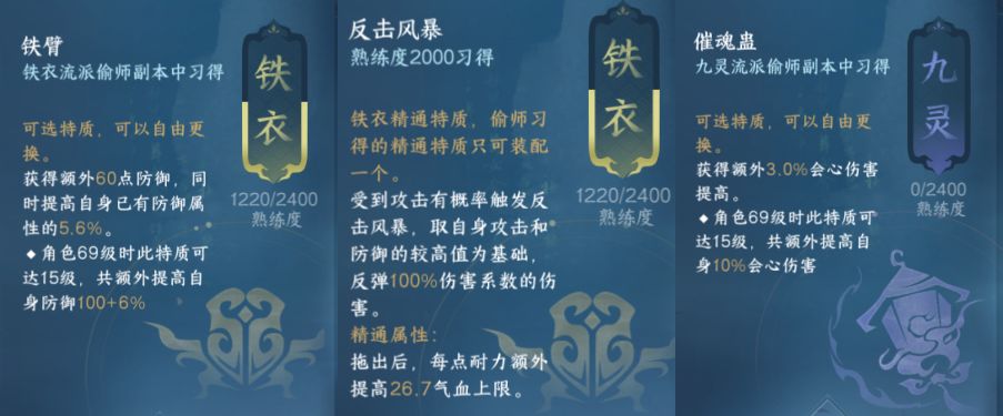 无论PVP还是PVE都需要学习铁衣和九灵的特质技能,所以花两周去偷完就对了!