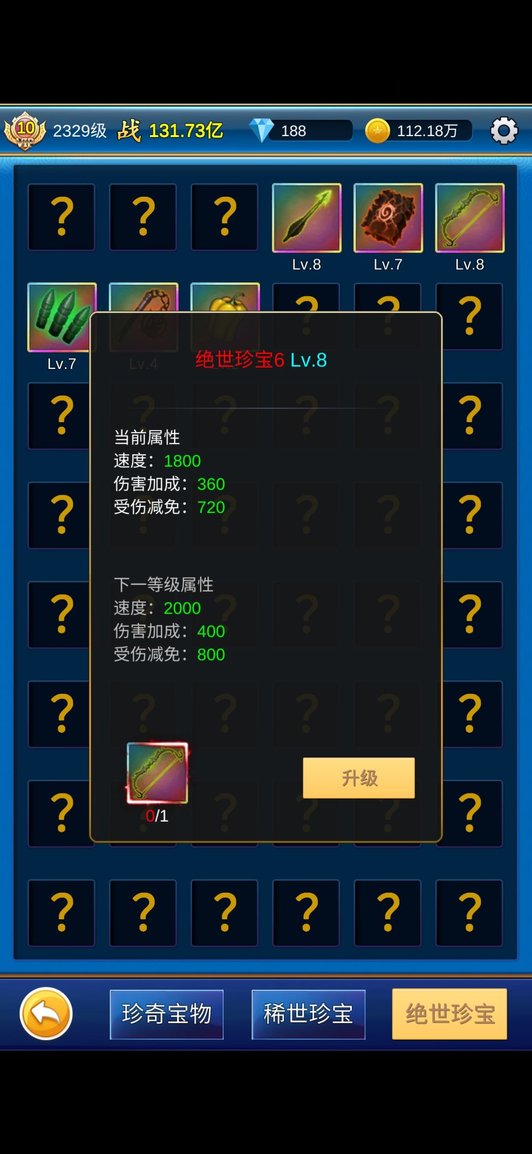 第八,珍宝速度提升最大,绝世全部增加速度,稀世第6列能加速度