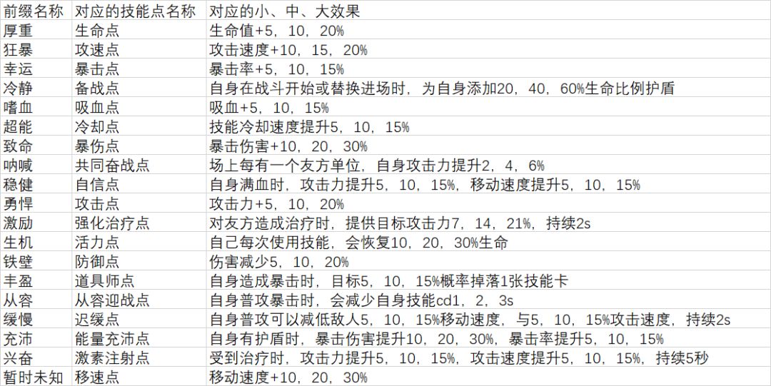 武器拥有各类前缀,不同名称的前缀对应不同的点数,点数攒满10、15、25点时分别触发大、中、小的效果