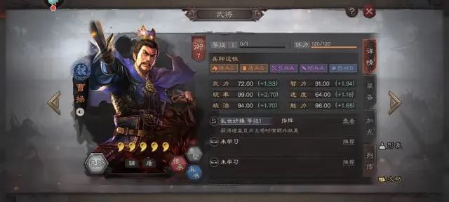 武将点评:人称人形刮骨,又能给属性又能治疗我军兵力最低的单体,缺点就是这个武将太难抽到,优点就是可以百搭任何阵容。