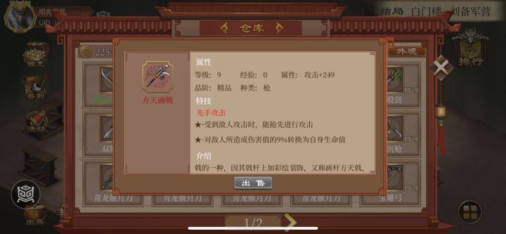 理解了连续攻击、先手攻击伤害机制后,可以实战上利用起来,比如张飞在常规配装顶不住的情况下,可以试试戴上方天画戟,雁翎甲,面对物理伤害的敌人会硬一大截。