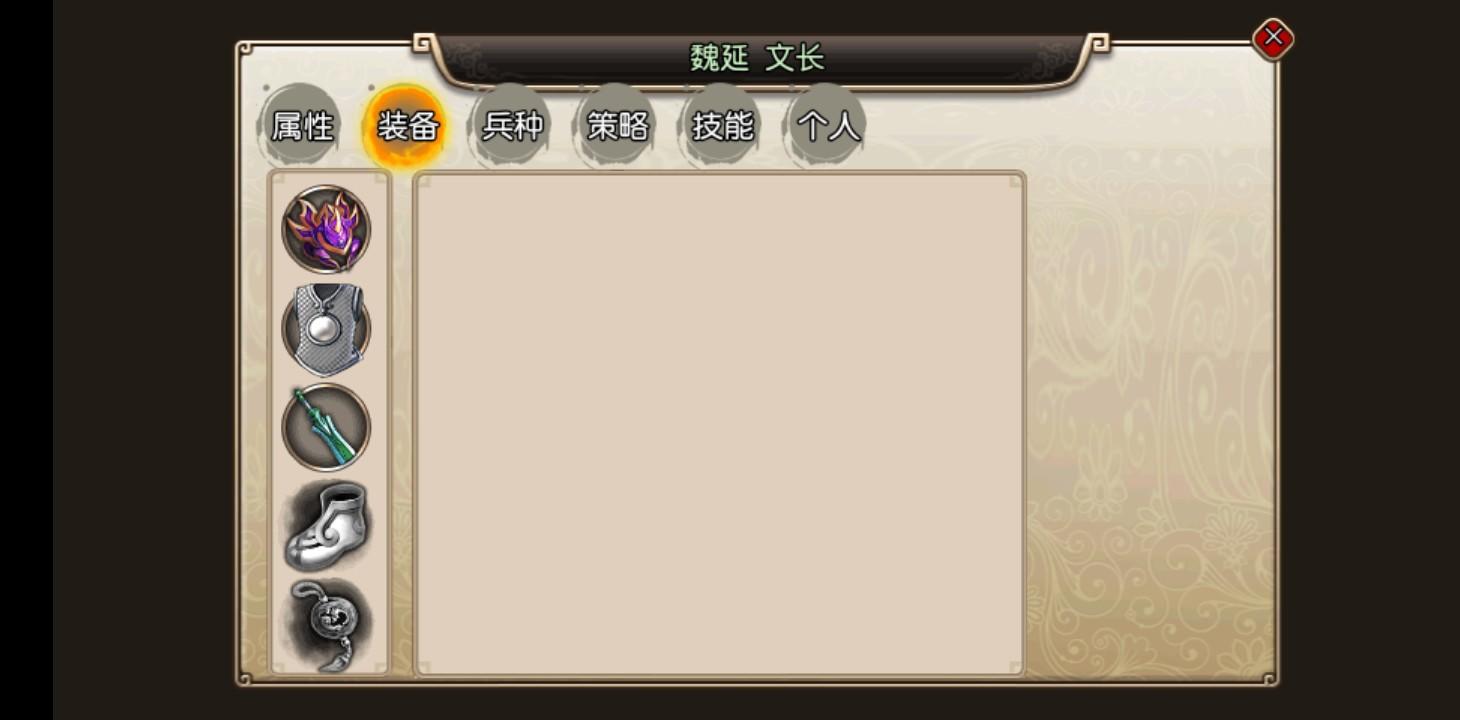 魏延兵种为白耳兵,装备了群反盔、愈坚甲、破兵剑。他的伤害因为兵种卡在了A档,所以打人不算太痛,但是有破兵剑让你在物伤上无法克制,所以团队里必须带上“高法伤谋士克制”。