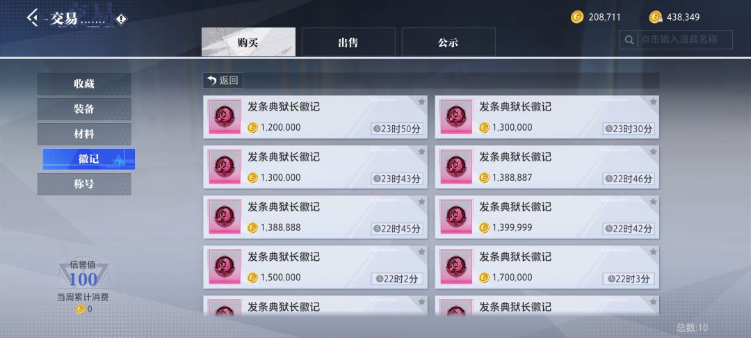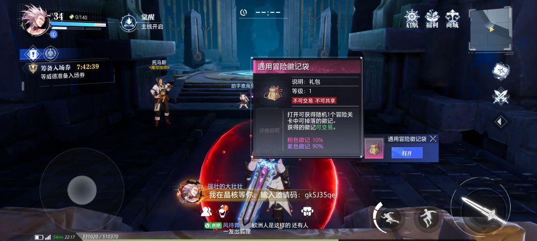 运气好10%几率能开出1-200W金币的粉色徽记,前期徽记非常值钱,100W金币能买一套时装,每个角色都可以获得一次!