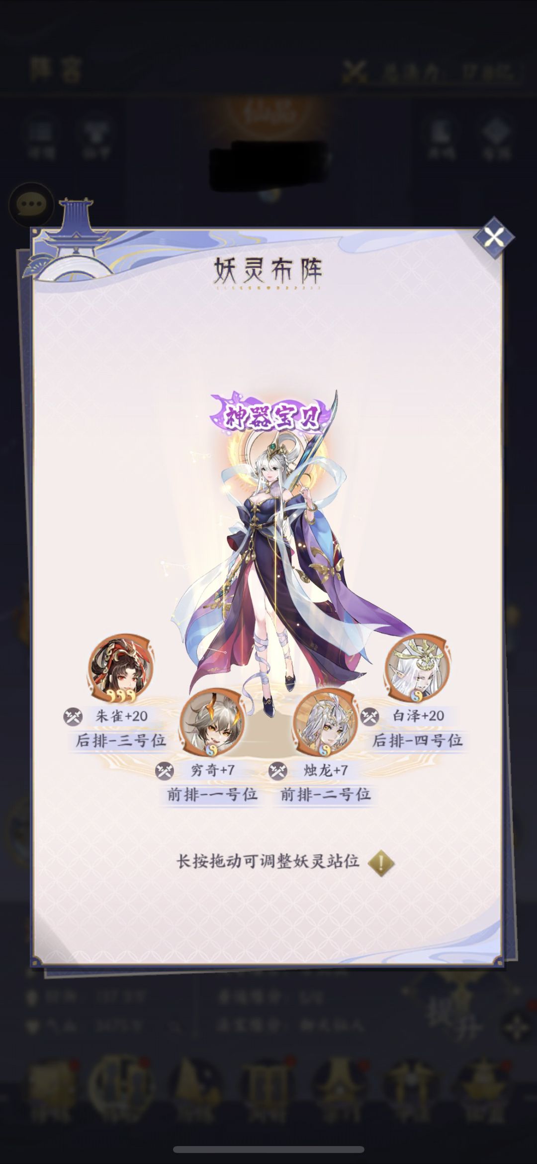 再说一下晚上八点的活动,妖王或者魔域,可以看上图阵容是 按照站位,穷奇, 烛龙/嘲风,朱雀,白泽,思路是穷奇带毒印的本命叠毒降防,烛龙/嘲风,当个打火机给朱雀打工,白泽最后一个位置享受全额debuff加成。另外主角功法参考上面输出队。神通的话对面只有一个怪的话可以换成天地一剑。另外穷奇或者白泽远一个先拉到八星,千万别学我一个拉一半了又想拉另一个。。。前期最大失误!