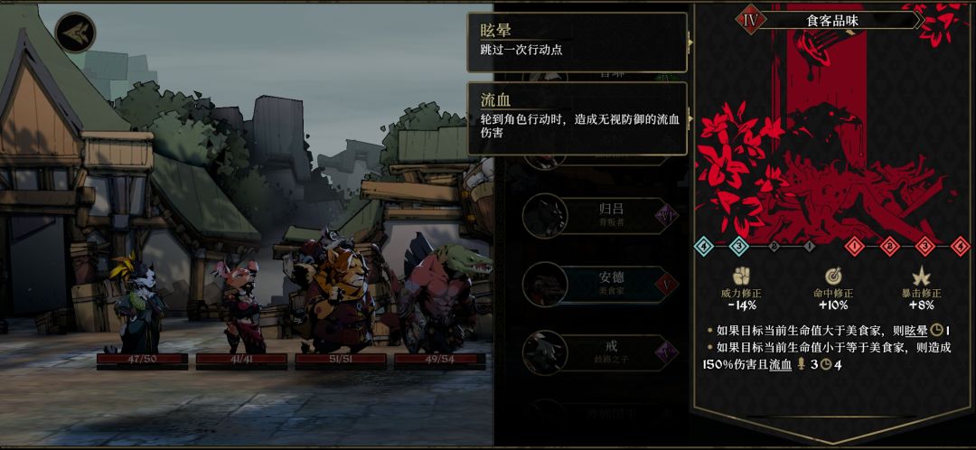 乌鸦的三技能食客品味可以在三四号位释放若敌方血量高于乌鸦此次攻击会使敌方眩晕,若是敌方血量低于乌鸦则此次伤害造成1.5倍,并使敌方流血!