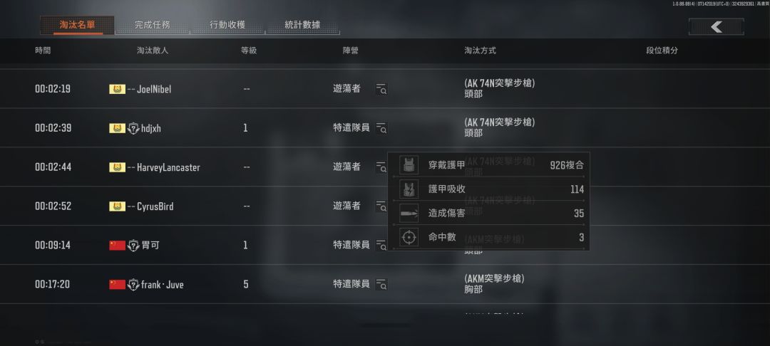 4.玩家情况:在国际服当中,账号注册人物的时候会给你选择国家的,会有国旗给你,包括你的狗牌和击杀上也会显示,大概如下图