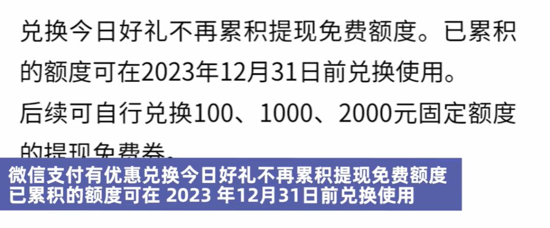 也就是说,用户已经兑换的额度不能继续往上累积了,已累积的额度可在 2023 年 12 月 31 日前兑换使用。目前微信官方尚未作出回应。