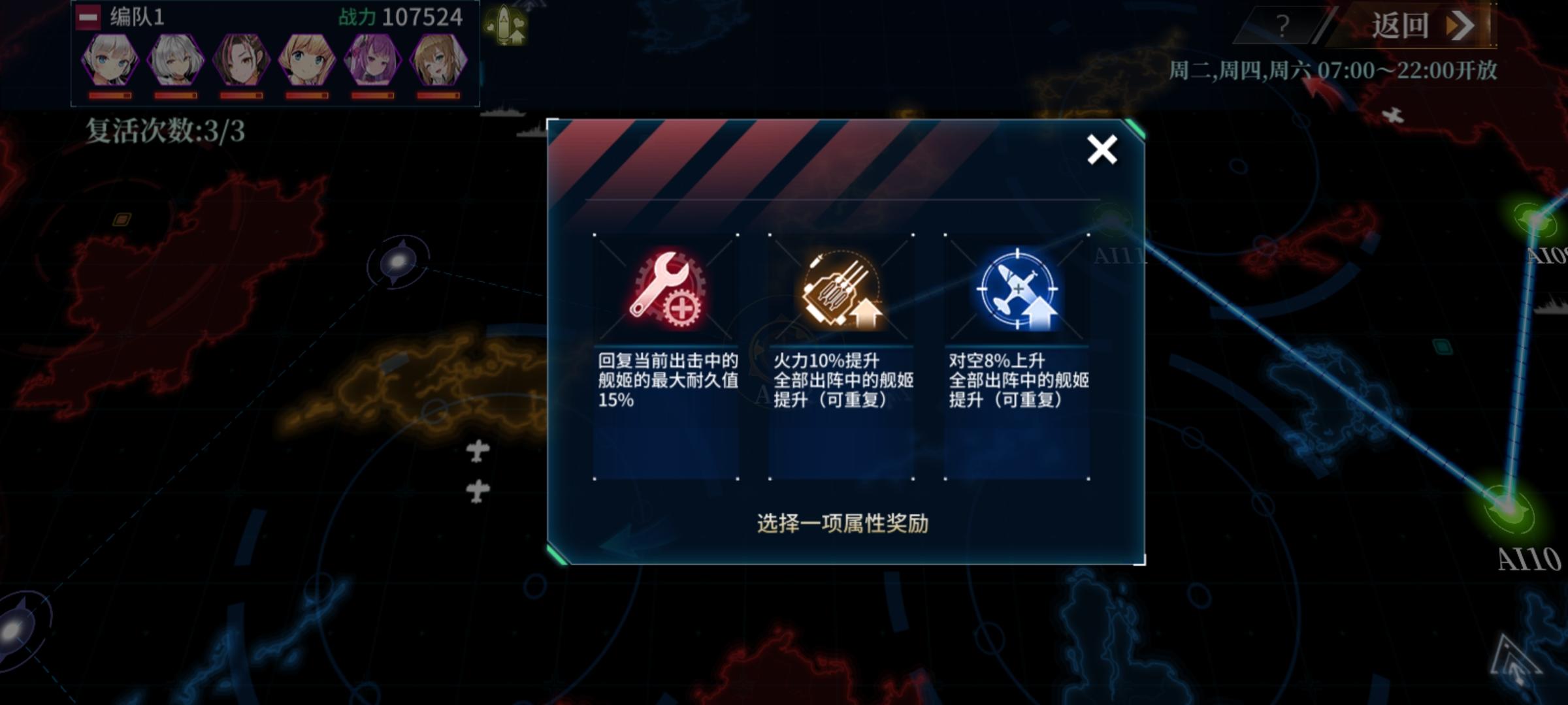 但是我选择了【火力10%提升】却得到了一个寂寞……准确来说,选【火力10%提升】、显示的效果是【回复耐久】…………