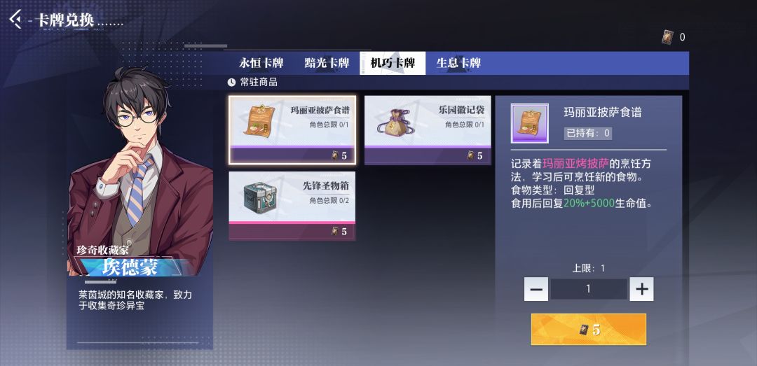 现在可以知道的情报:莱茵城埃德蒙兑换卡牌食谱。
