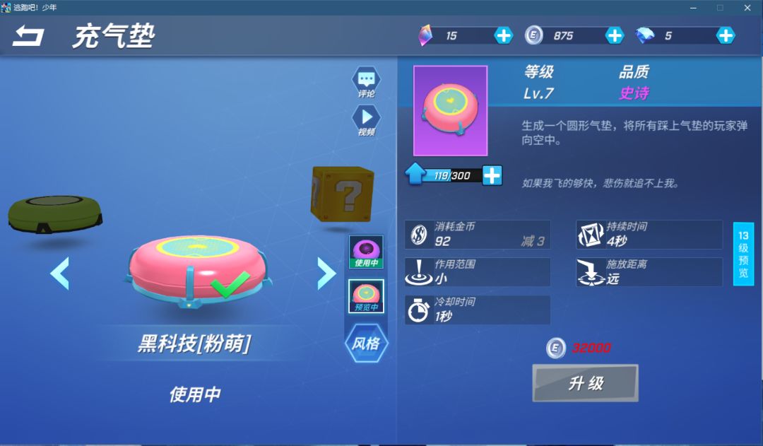 不过消耗金币不是很多,后期闲着没事可以和队友一起蹦着玩,如果商量好了的话,也可以和追捕一起蹦跶(笑)