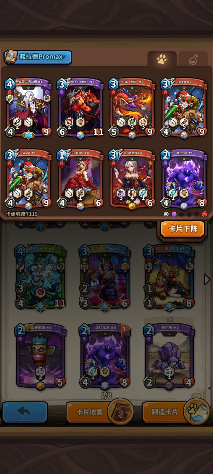 也是最近回归这个游戏的,好多卡都删了,几天游戏下来后是有许多感受,和大家聊一聊,有什么想法也可以在评论区留言。大家的卡组现在基本上是毒爆,强运,蓝苏,冲锋,个人觉得现在蓝卡与红卡是主流,自然卡玩的人也很少,但以后出新卡后只要不超模,游戏玩法和平衡肯定会更好,官方在卡片收集里也公布了部分卡的开放时间,所以这次回归不太可能有大家考虑的圈钱跑路的行为。现在包括我在内的红卡玩家大部分都被蓝卡恶心,但以后出突袭警觉卡与装备红色会好很多,但蓝又怕强运毒爆,红偏克强运毒爆,我现在玩的是弗拉德(迦楼罗死活开不出,转行了),感觉面对所有卡都能打,策略也很多,弗拉德在面对强运时有很好的清场能力,又有其他红卡,打冲锋和毒爆也无压力,打蓝卡时尖啸也装备恐惧能接近后排苏,然后猫骑战斧管他有没有甲直接秒,所以感觉弗拉德是很均衡的卡。后期出新卡转行红紫一起发展,蓝绿发展,绿卡有均衡后都是高费大哥,也可以养,但出单色精英后就不分克制了,记得当时技能天花乱坠的,我一个卡组里六精英两年兽,装备卡全精英,五费清全场。不过就是因为这样不得不氪也导致游戏凉了,希望以后出卡能限制超模卡,减少氪金,才能发展的更好