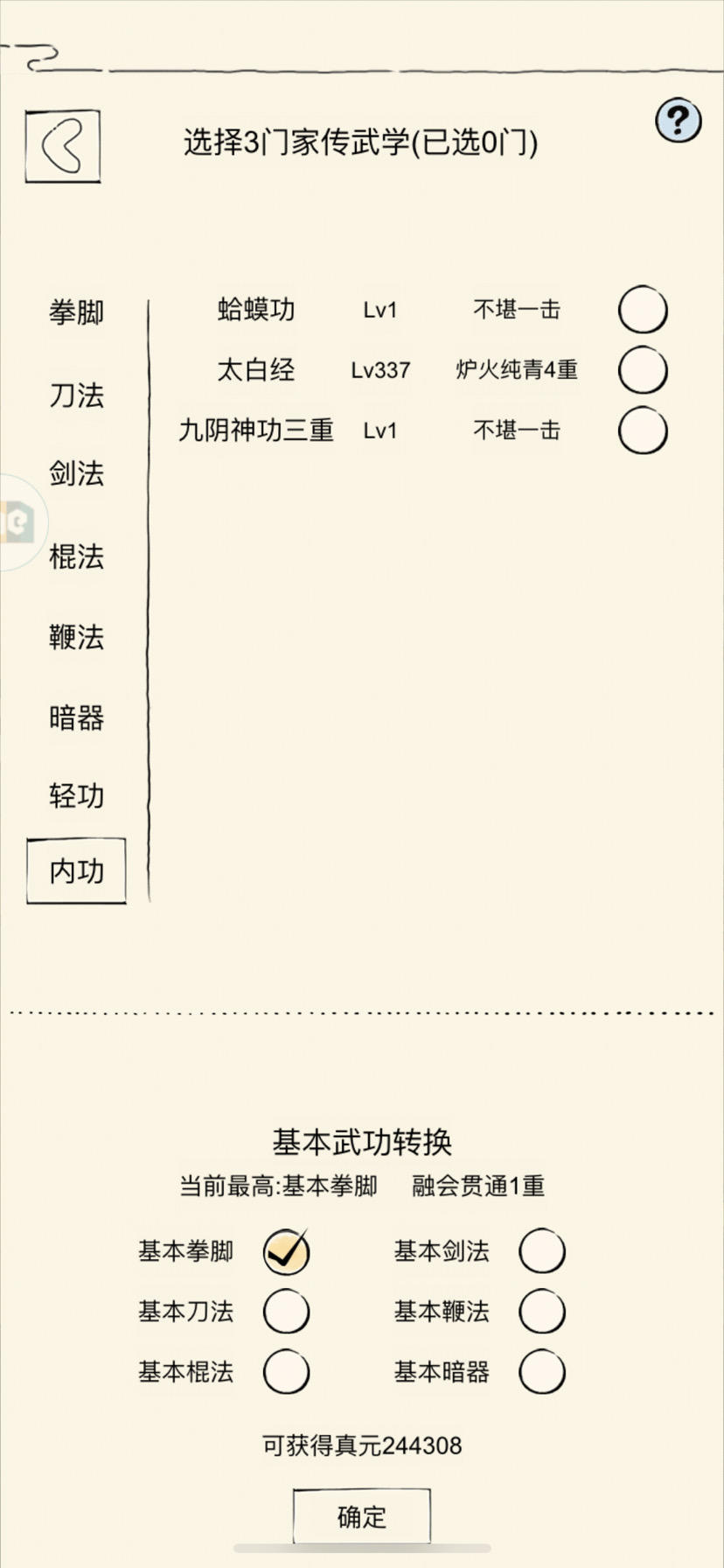 这些是主要的武功,还有小李,八音,霸王,天女这类不适合打地狱的,二轮应该去拿刀绝,可是不知道平时该用什么武学