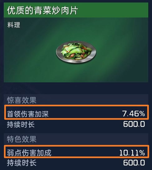 3、特定的食物可以提升伤害转化效率,助力更快通关。推荐食用优质的青菜炒肉片,提高对首领的伤害;
