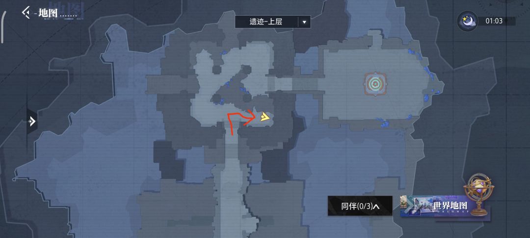 注3:下面放的坐标图,具体点是图中的黄色箭头,即角色所在位置,也就是宝箱位置