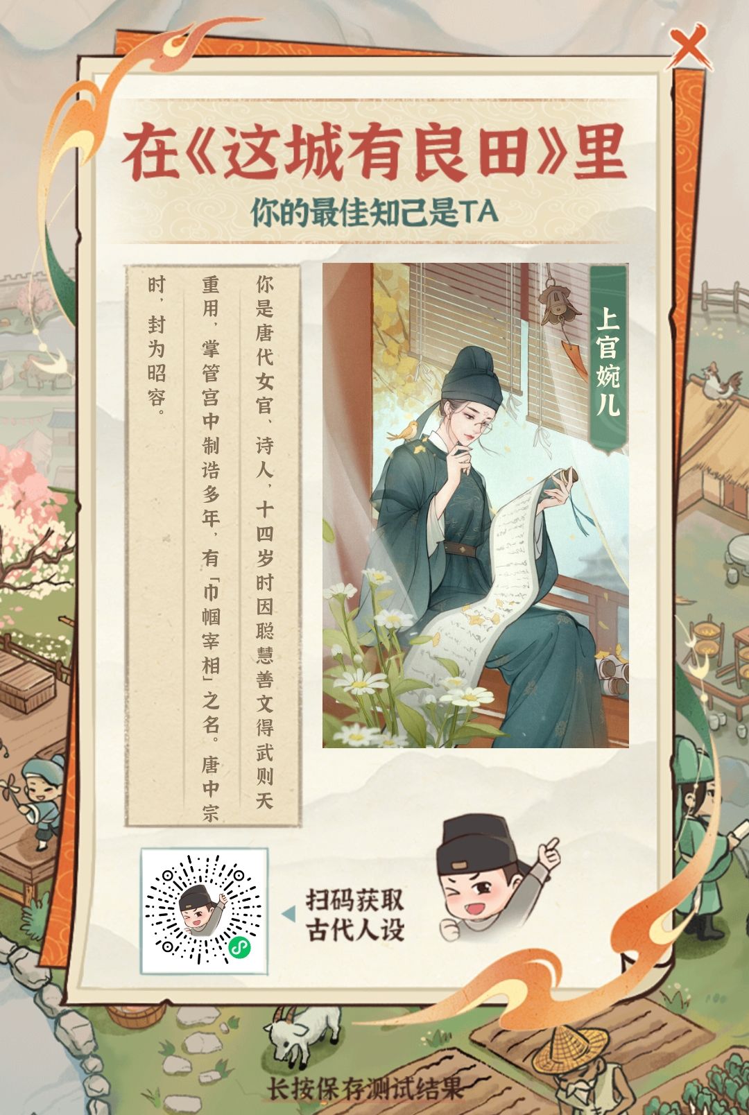 测测你会是哪位古代名人!来提前认识你在《这城有良田》的知己吧~
