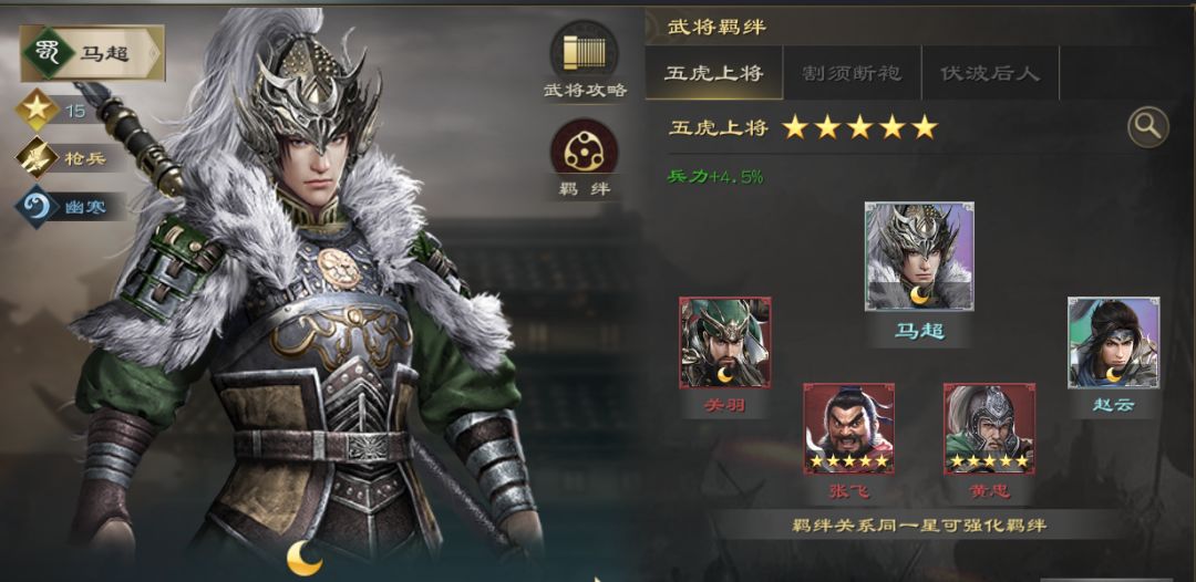 拥有超高武力的马超,在比拼环节占领优势。而专精上,每次攻击敌人时会无视防御造成额外固定伤害该伤害为自身攻击力的50%,并且死亡时对全场敌人造成固定伤害,该伤害为自身兵力值的10%。因此这名英雄在战场上是十分值得推荐的英雄之一。