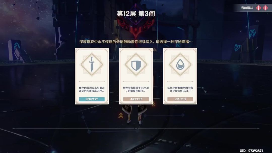 首先是渊月祝福。本期的渊月祝福效果为角色登场获得10秒30%的普攻、重击和下落增伤,以及10%的攻速,几乎可以说没有触发条件。高贵的攻速加成对于绫人、宵宫、散兵等吃攻速的普攻c是极大的利好,而魈、胡桃、甘雨等能吃到30增伤buff的角色也有不小的提升,可以说是相当顶级的一期buff了,对队伍伤害的提升相当可观,满星自然也更轻松了。