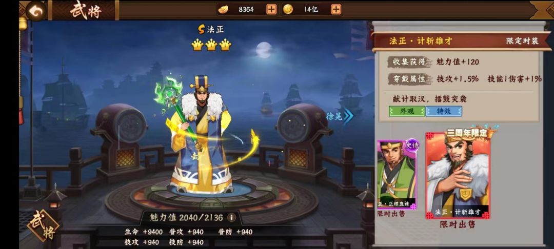 军团远征副本中同样也是有着武将阵营的影响,但是这种影响又和试炼之地及蛮荒异兽不同,军团远征是以对应阵营的上阵武将个数提升伤害百分比,以第三关卡和第七关卡为例,每上阵一个蜀国武将就可以提升10%技攻伤害,因此在这两个关卡种,小编建议上阵庞统+法正+无双黄忠的组合。在提升30%技攻伤害Buff的作用下,法正佩戴赤兔鞍/神仙笔,同时利用该武将二技能接触倒地保护的特效来单刷Boss。当然除了这两个关卡是蜀国词缀增益比较明显之外,其实我们在挑战第八关卡的适合也是用,只是技攻的加成只有增加20%而已,但不影响法正的能够破解倒地无限输出的超强能力。