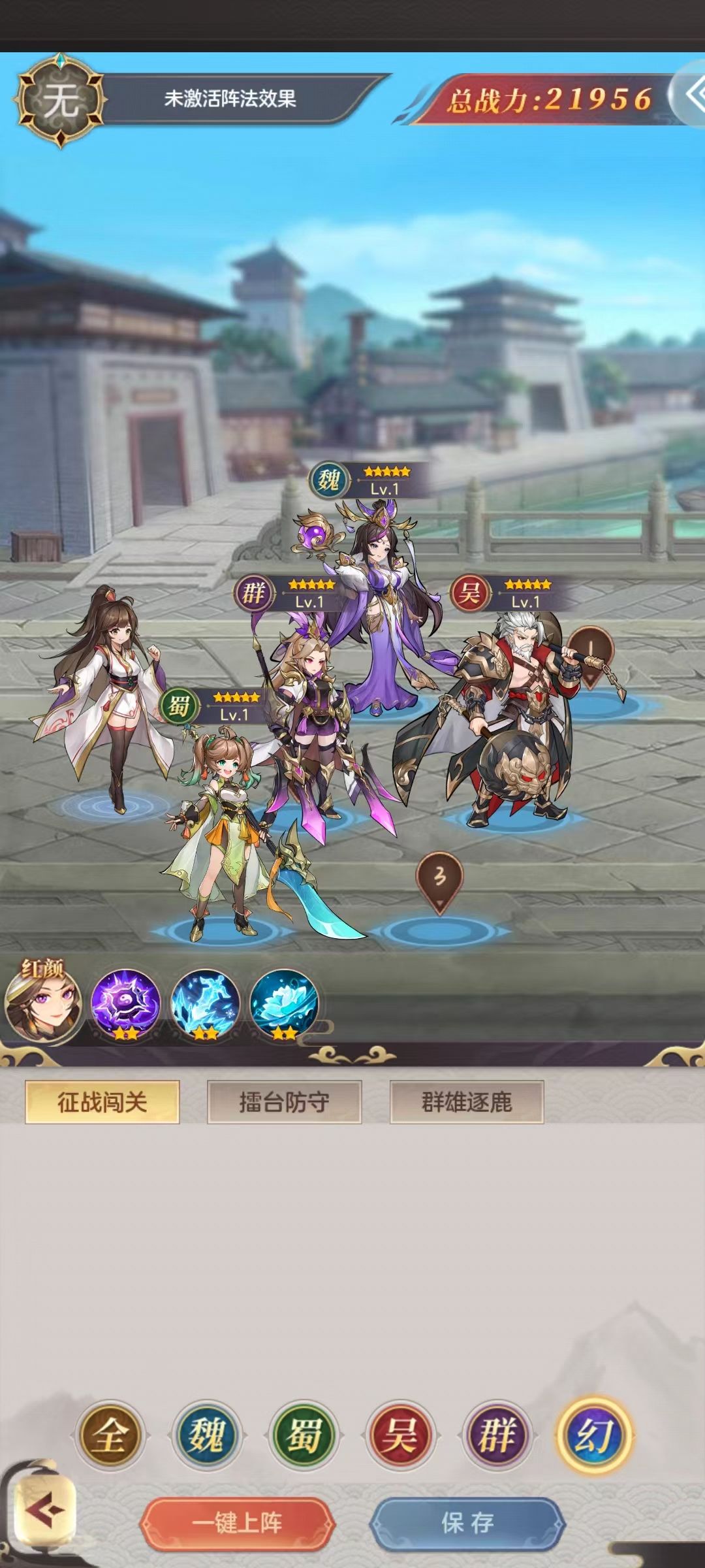 此阵容魏蜀吴群各占一人,能极大缓解单阵营阵容的狗粮压力,非常适合前期过度使用。此外此阵容对单强力,在前期各式冲榜活动中也能取得一席之地,后期小吕甄姬也仍能发挥余热。