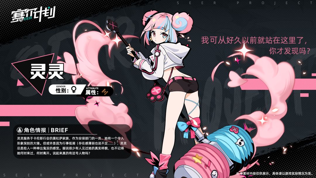 灵灵服务于卡伦斯行会的莫杜萨家族,作为安保部门的一员,她有一个令人形象深刻的大锤。但或许是因为行事低调(存在感薄弱也说不定……),灵灵总是给人一种神出鬼没的感觉。据说很少有人见过她的真实样貌,也不记得她何时来过,何时离开。说起来真的有这号人物吗?