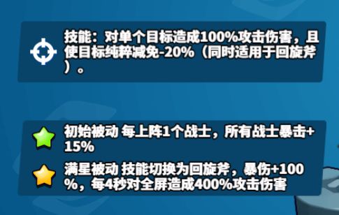 满星被动:技能切换为回旋斧,暴伤+100%,每4秒对全屏造成400%攻击伤害