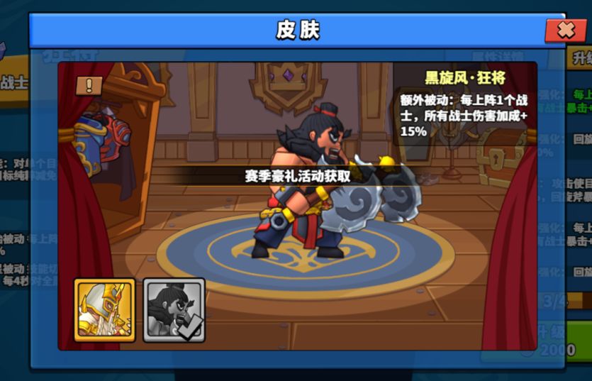 初始被动:每上阵1个战士,所有战士暴击+15%