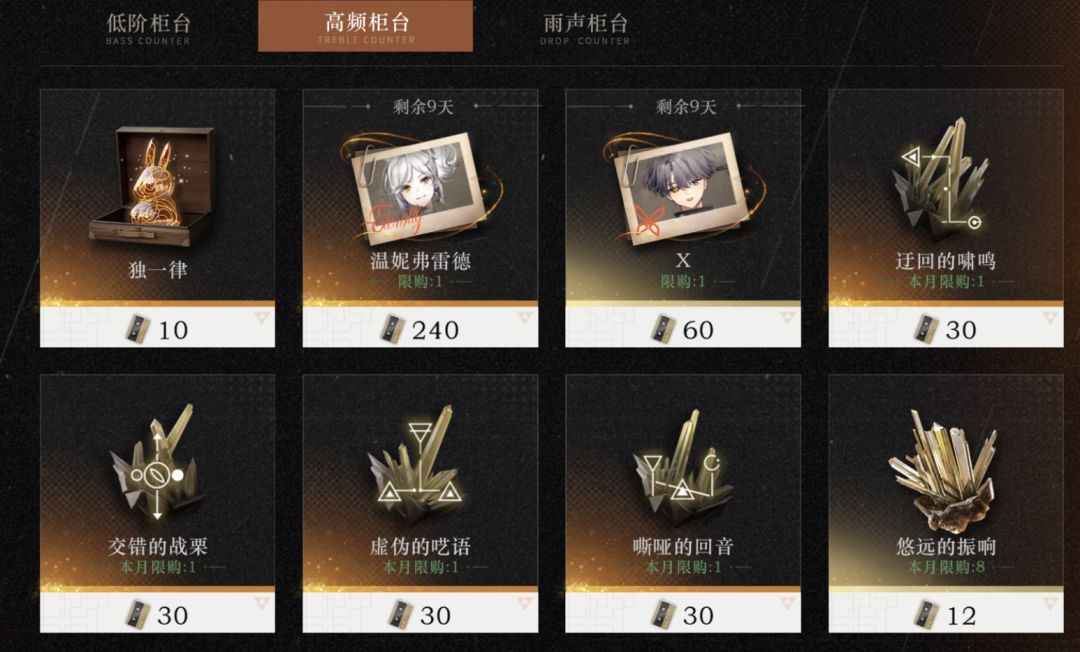 以高频柜台兑换的定价来看,1个6星 = 4个5星,按照这个比例再代入15600雨滴里面算,能算出1个5星大概900雨滴,1个6星大概3500雨滴。