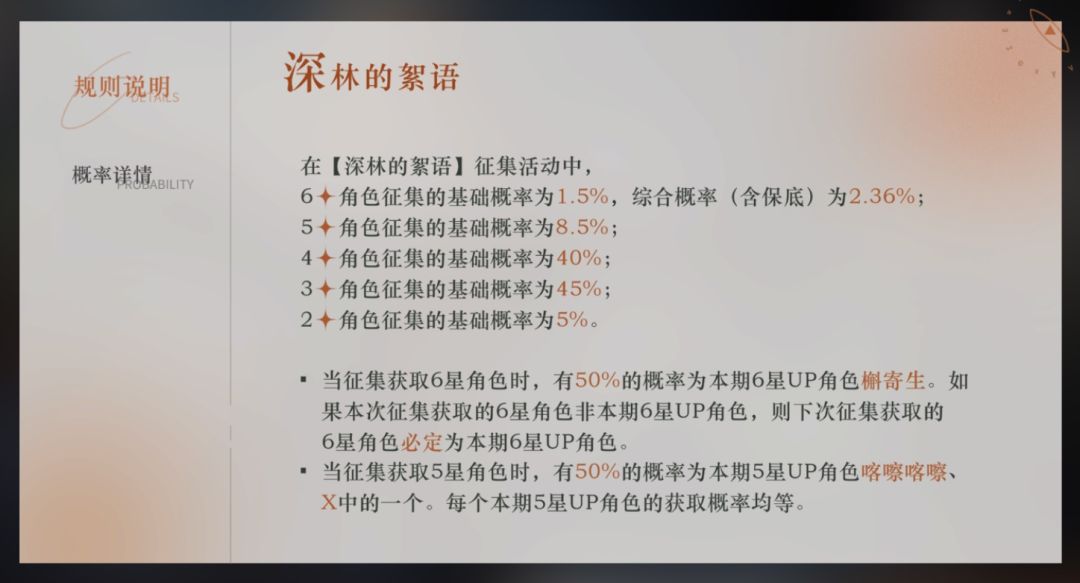 打开概率公示页,可以看到各品质角色的概率。