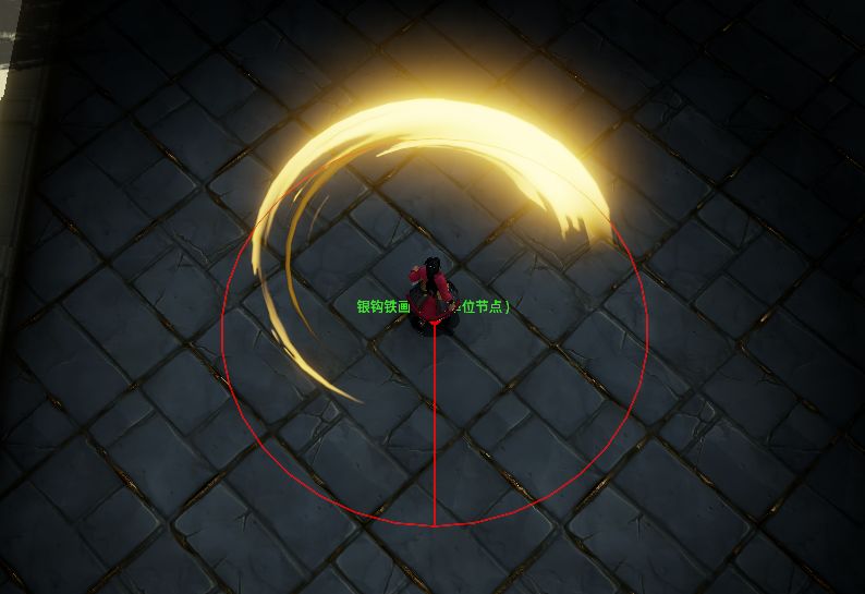- 当任何一个效果节点执行时,客户端会在节点的位置显示节点的名称,并在当前节点及其父节点之间连线,目标为点的节点会显示一个圆圈提示节点的位置。而目标为单位的节点则会在对应单位上显示节点名称。